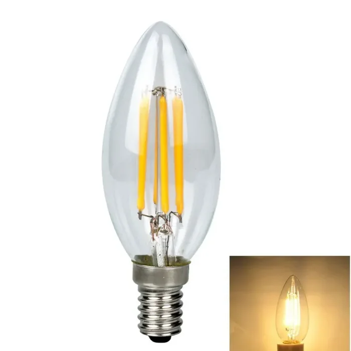 - Candela luce E14 LED lampadina 4W 400 Lumen, tensione: 220V AC, angolo di visione: 360 °, bianco caldo: 2800-3200K, DSize: ø36 mm * 100 mm.