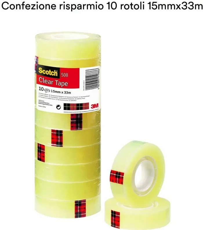 10 x Nastro adesivo trasparente Scotch 3M Acrilico, 15 mm x 33 m, Per ufficio Sconti