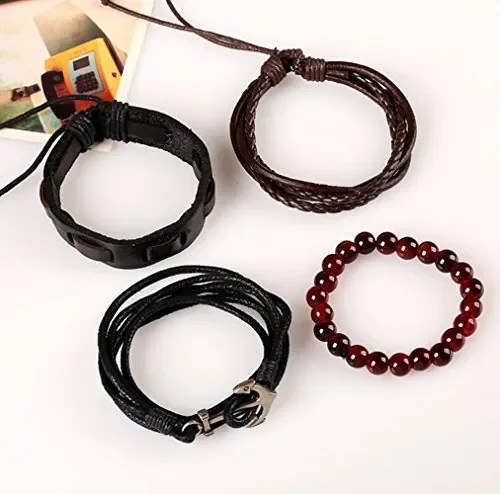 BESTEEL 28PCS Intrecciato Bracciali Pelle da Uomo Donna Punk Multilivello…