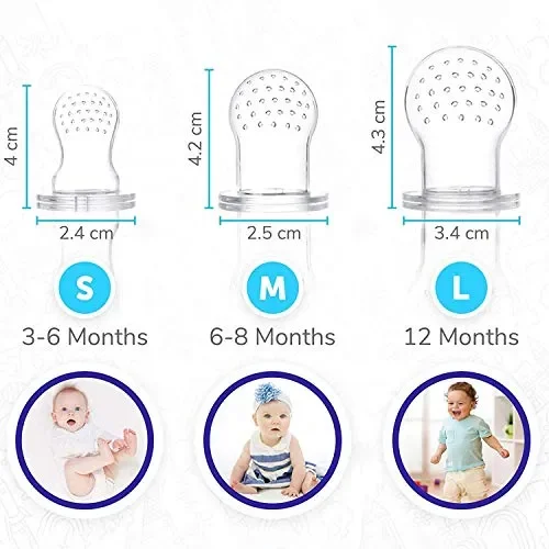 • 【Assaggia vari frutti】 : 4 ciucci per inserire principalmente pezzetti di frutta e i succhietti sono di 3 diverse misure per adattarsi al bimbo e alla sua crescita. Hanno 1 taglia piccola per i bambini di età superiore ai 3 mesi, 2 dimensioni medie per i bambini di età superiore ai 6 mesi e 1 taglia grande per i bambini di età superiore ai 15 mesi.