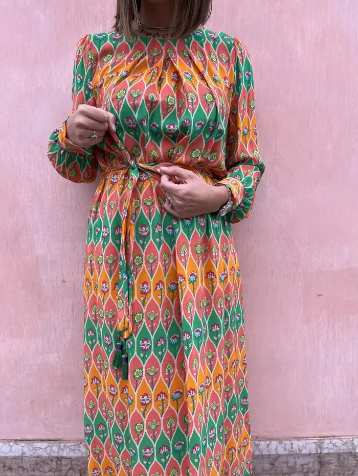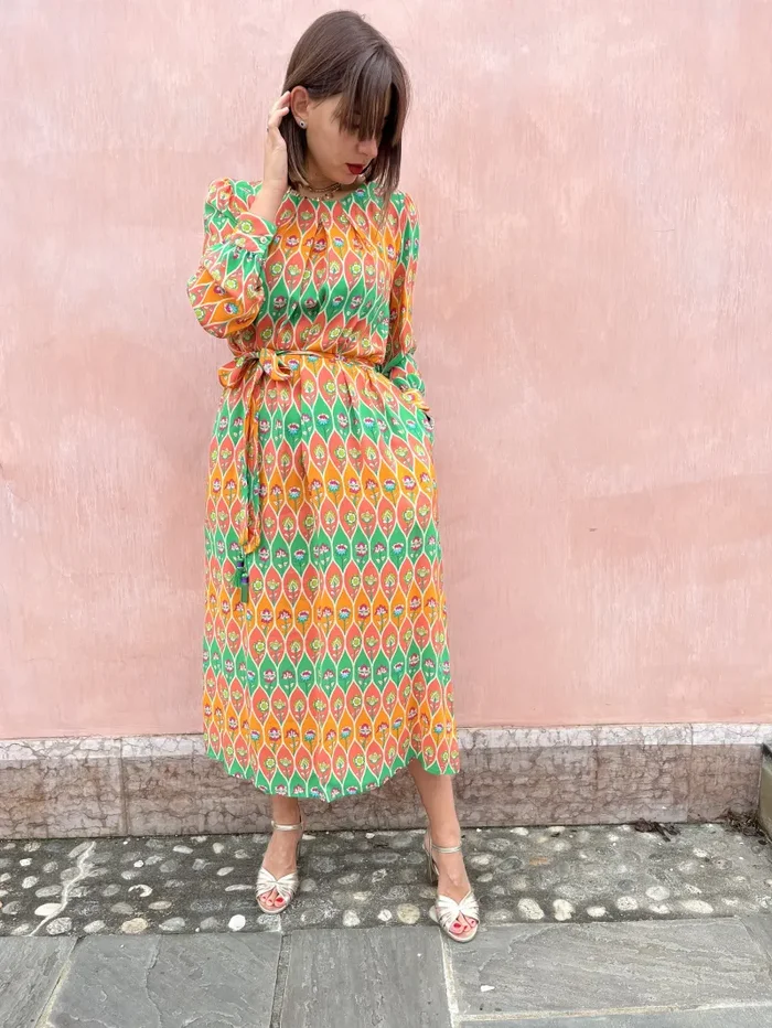 Realizzato in viscosa stampata, presenta una cintura in vita e taschine laterali per un tocco di stile e praticità. Elegante e confortevole, sarà il tuo alleato in ogni occasione. Non lasciartelo sfuggire!