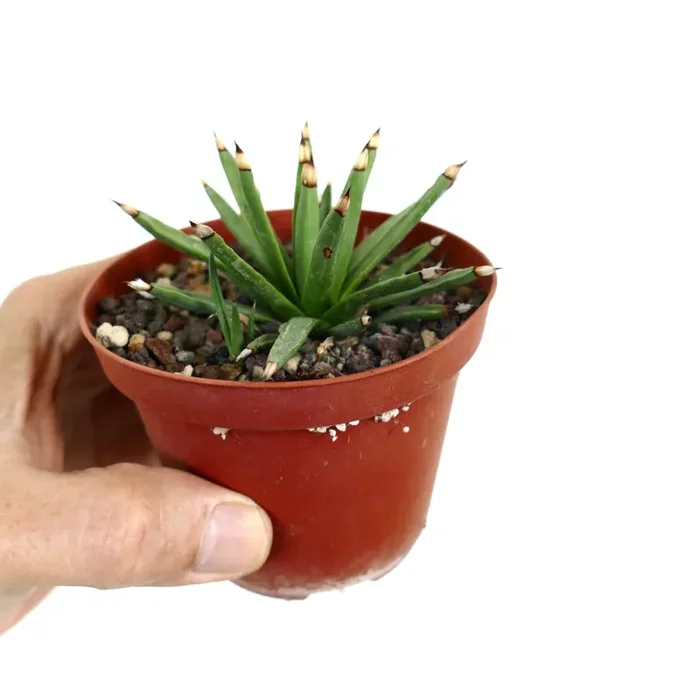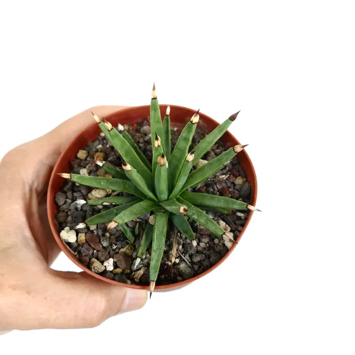 Agave albopilosa è una rara e molto apprezzata specie di agave, nota per il suo aspetto unico e i suoi insoliti apici fogliari. Questa succulenta compatta e a crescita lenta presenta foglie verdi spesse e carnose che formano una densa rosetta. La caratteristica distintiva di questa agave è la presenza di ciuffi lanosi bianchi simili a filamenti che crescono dalle punte di ciascuna foglia, creando una texture morbida e fiabesca che contrasta con la forma strutturata della pianta. Man mano che la pianta matura, rimane compatta, rendendola una scelta perfetta per giardini rocciosi, contenitori o come punto focale in paesaggi aridi.
