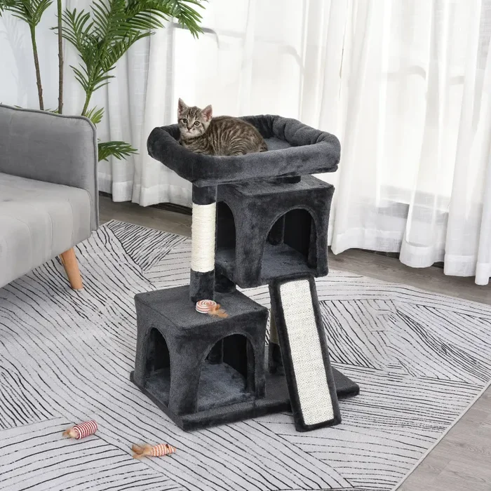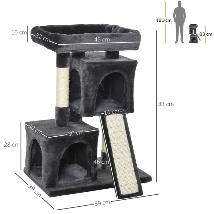 - TUTTO IN UNO: Questo albero per gatti multilivello è dotato di pali tiragraffi, due casette e lettino, per far divertire e riposare comodamente i tuoi gatti