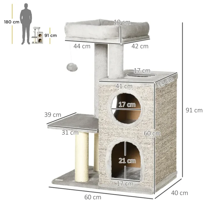 Soddisfa gli istinti naturali del tuo gatto in modo sicuro con questo tiragraffi per gatti ! Questo albero per gatti comprende un tiragraffi in corda di sisal, un lettino e una pallina da gioco per far divertire il gatto e distrarlo dai tuoi preziosi mobili. Dai sonnellini ai giochi, questo trespolo per gatti offre ai vostri un posto dedicato tutto per loro dove oziare, graffiare e altro ancora.