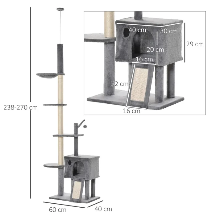 - ALBERO MULTI-ATTIVITÀ: Questo albero tiragraffi per gatti può essere fissato al soffitto grazie a un palo regolabile. È dotato di diverse piattaforme di varie dimensioni, oltre a pali tiragraffi, casetta, amaca e gioco pendente. Il posto perfetto per far giocare e riposare i tuoi gatti