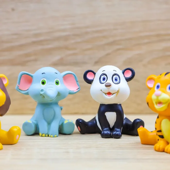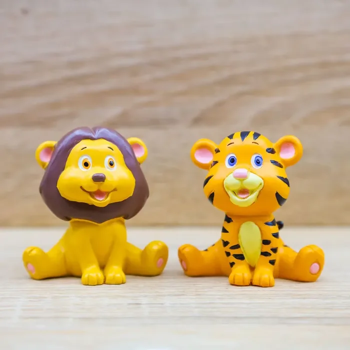 Animali della giungla in versione cartoon: zebra, leone, elefante, panda, tigre e giraffa, firmato Mandorle by Paben.