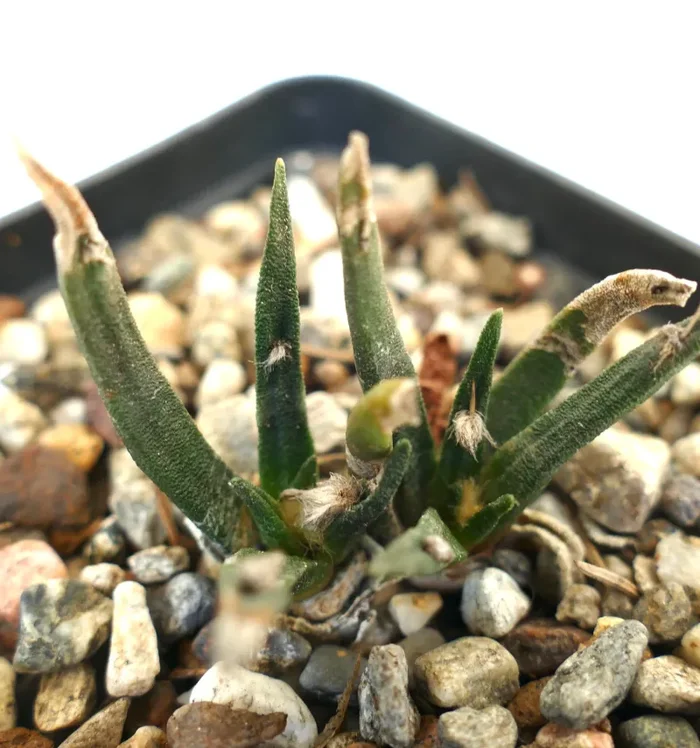 wL’Ariocarpus agavoides 2 HEADS è una specie di cactus rara e affascinante, apprezzata per il suo aspetto unico. Presenta una struttura compatta e simile a una rosetta, con tubercoli carnosi di colore verde scuro che ricordano le foglie di agave. Questo esemplare particolare ha due teste distinte, che lo rendono ancora più unico. I tubercoli sono coperti da una fine lanugine e possono talvolta produrre piccoli fiori rosa vibranti al centro. Questo cactus a crescita lenta è molto ricercato dai collezionisti per il suo aspetto distintivo e la sua rarità, e rappresenta un eccellente aggiunta a qualsiasi collezione di succulente o cactus.