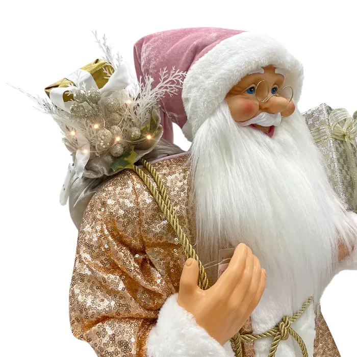 Babbo Natale Abito Rosa Glitter H110 cm con Mini Lucciole e Suoni