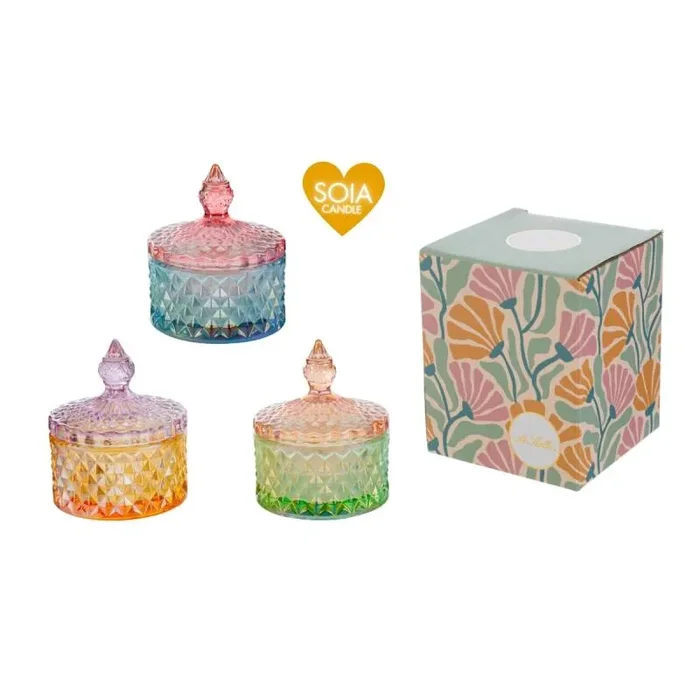 Queste eleganti scatoline in vetro, disponibili in diverse tonalità, racchiudono una delicata candela realizzata con cera di soia, ecologica e a lunga durata. Perfette per matrimoni, battesimi, comunioni o qualsiasi occasione importante, queste bomboniere non solo decorano, ma regalano anche un’atmosfera calda e accogliente.