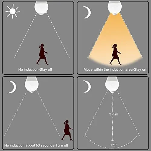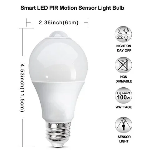 - ✨ 【Risparmio Energetico】Queste lampadine con sensore possono sostituire una lampadina a incandescenza da 100 watt, risparmiando fino al 90% della bolletta elettrica. Con una durata di 30.000 ore, perfetto per scale, garage, corridoio, portico, passerella, cortile, corridoio, patio, posto auto coperto, ecc.