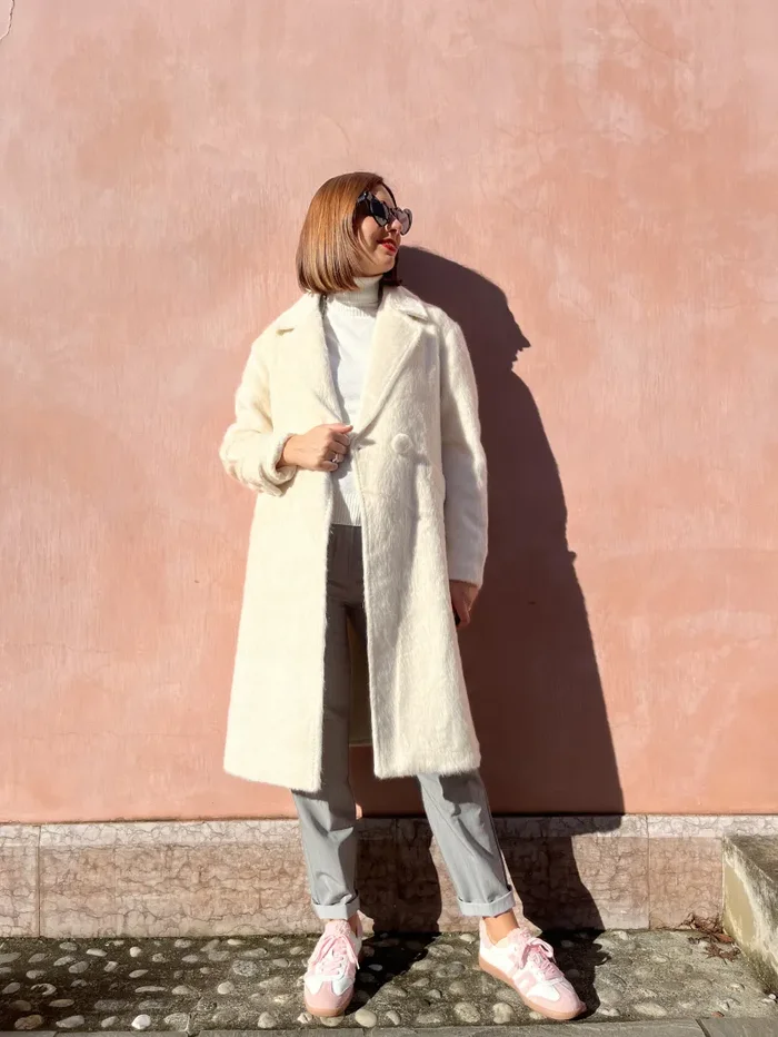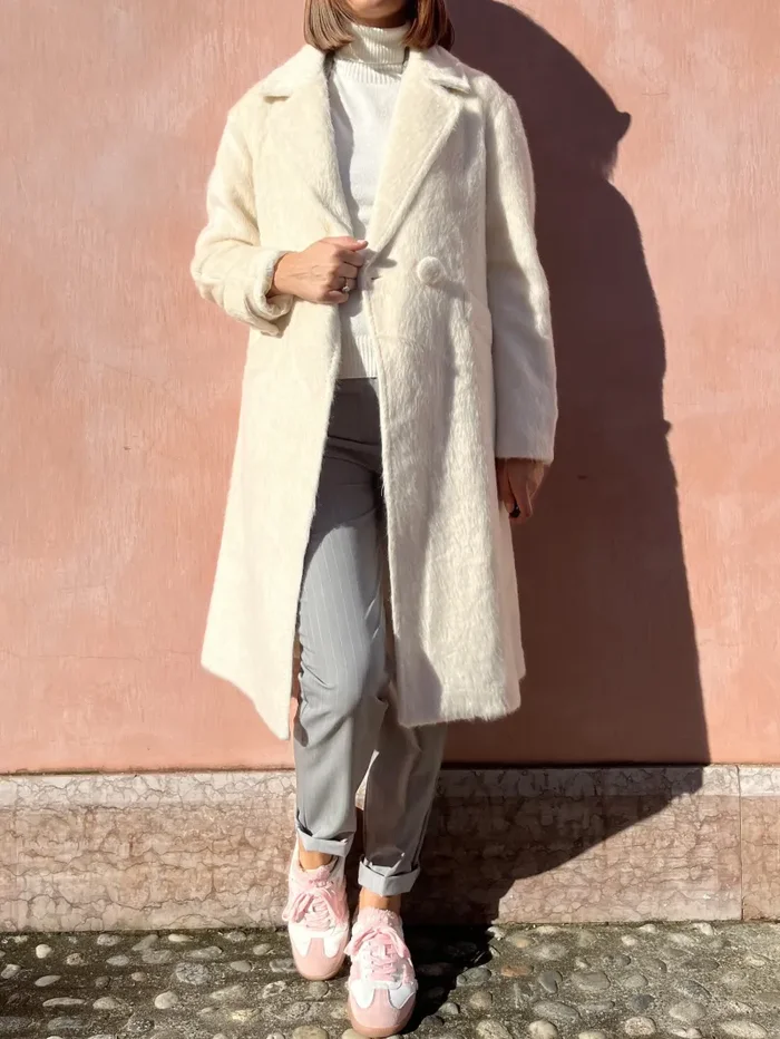 Rendilo raffinato con il nostro Cappotto Doppio Petto con bottone 2/1. Lunghezza 3/4 e foderato, offre un effetto peloso per il massimo comfort. Un must-have per l’autunno!
