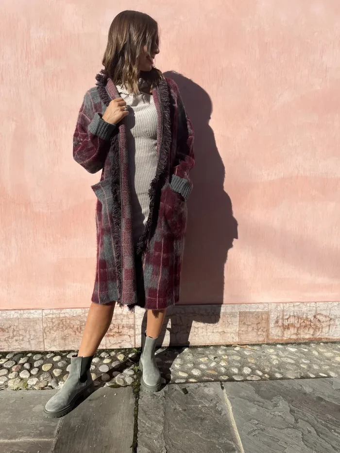 Cappotto in lana e viscosa con frange unica: un’esclusiva combinazione di texture, taglio e dettagli unici! Un look moderno ed elegante per dare un tocco di stile al tuo guardaroba. Una scelta perfetta per un’occasione speciale. Vestiti unico!