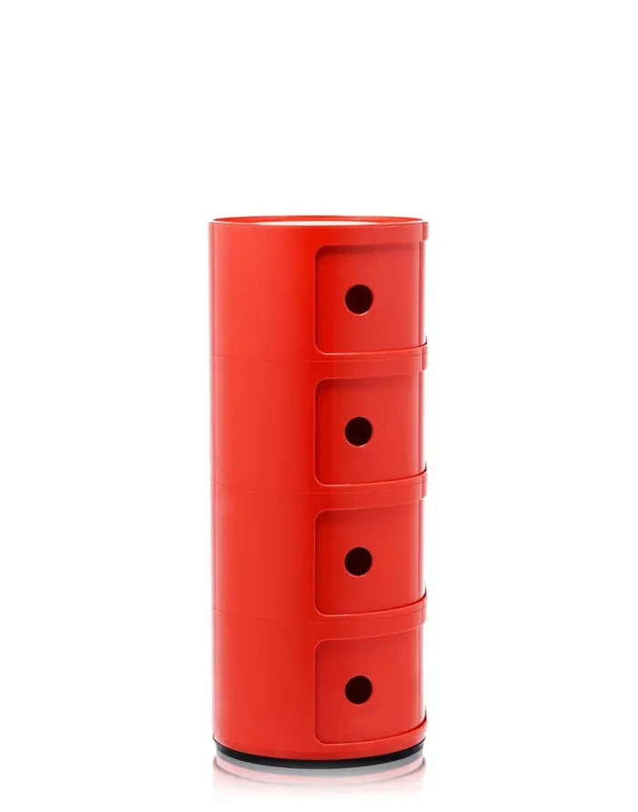 Gli elementi componibili sono stati progettati per rispondere a diverse esigenze d’uso e vivere in ogni ambiente della casa. La soluzione progettuale che anima il sistema Componibili è l’elementare e solida sovrapposizione verticale dei singoli pezzi che, tramite semplice incastro, vanno a comporre pratici mobili contenitori. Proposti in forma rotonda e quadrata, i Componibili possono poggiare su rotelle. Flessibili, funzionali, pratici, i Componibili nati nel 1967 sono un classico senza tempo dell’arredamento.