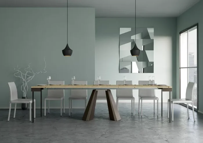 Consolle Allungabile Diamante Evolution.Una Consolle estremamente stabile, robusta, elegante e dal design originale. La Consolle ha un bordo perimetRale in ferro verniciato che dona al tavolo una sensazione di robustezza unica nel suo genere. Dalle linee pulite e di grande impatto, i due materiali impiegati si fondono in un’armoniosa combinazione.L’ampio e solido telaio in metallo, costituisce la struttura portante della Consolle stessa.Realizzata interamente in Italia mediante l’utilizzo di materiali 100% italiani.