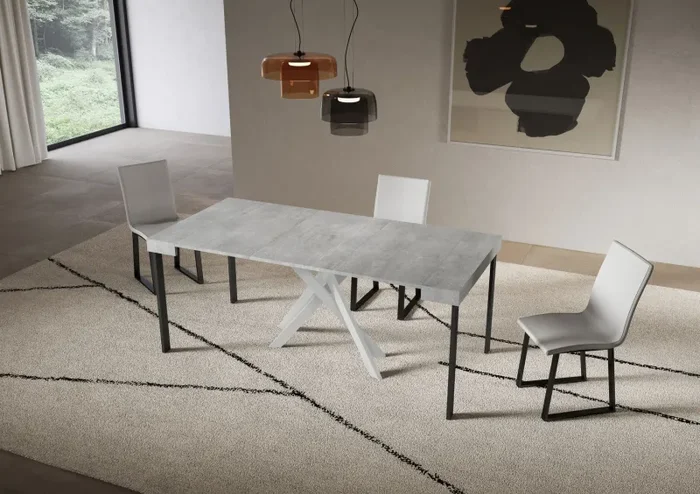 Consolle Allungabile 90-300x40x77 cm Saki Cemento Gambe Bianche