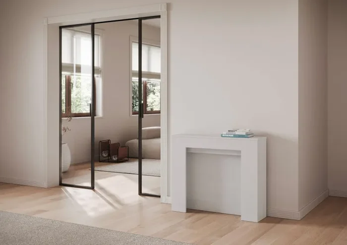 Consolle Allungabile 90-300x40x77 cm Saki Premium Bianco Frassino Gambe Antracite Vendita online
