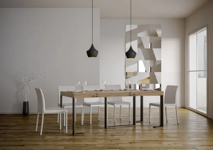 La versatilità della Consolle Allungabile Futura regala la comodità di trasformare un mobile discreto in un pratico e stabile Tavolo da Pranzo.