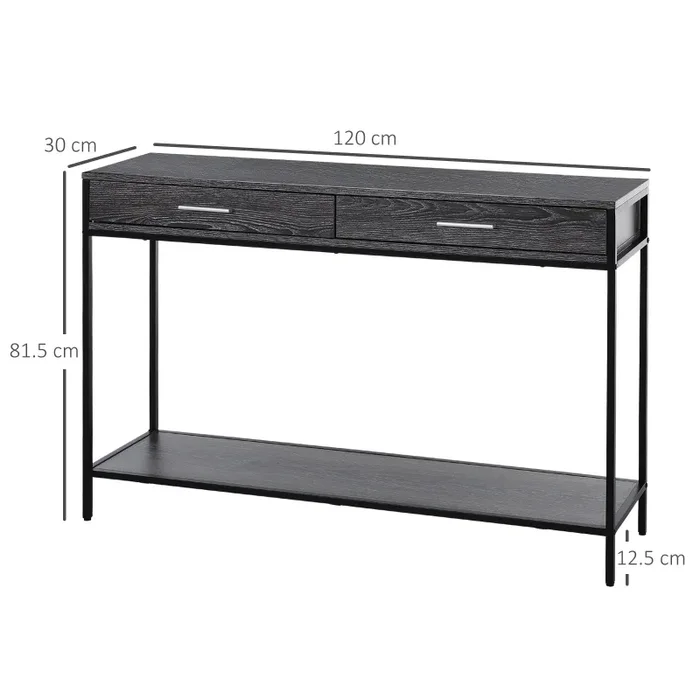 Consolle da Ingresso 2 Cassetti 120x30x81,5 cm in Legno e Acciaio Grigio