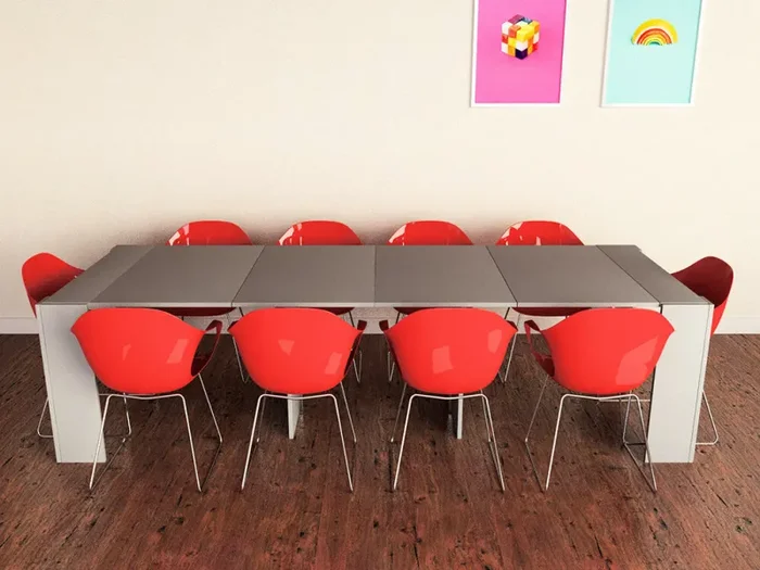 Consolle Tavolo Allungabile In Melamina per chi cerca un appoggio per gli spazi più piccoli o che all’occorrenza un tavolo che sia in grado di ospitare molti ospiti, sarà utilissimo dato che si allunga fino 300cm e tutti avranno un posto a tavola assicurato visto che è uno dei più lunghi della categoria, si allunga unendo fino ad un massimo di 4 allunghe da 65cm l’una che vengono riposte nelle gambe quando la consolle è chiusa. La Consolle Allungabile di TFT non solo è un complemento d’arredo utilissimo ma sarà un tocco di stile alla vostra casa. Dotata di una solida struttura in legno e in melamina sarà indispensabile per la vostra casa. Arredate i vostri spazi con la qualità del Made In Italy a marchio TFT Serie Moon