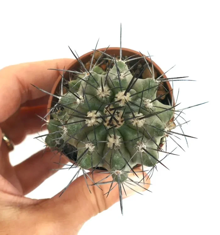 La Copiapoa cinerea x atacamensis è un affascinante ibrido di cactus che unisce i tratti distintivi delle specie parentali. Presenta un robusto fusto arrotondato o colonnare, spesso con una tonalità grigio-blu, arricchita da sottili sfumature verdi. Le sue costolature prominenti sono ornate da gruppi di acuminate spine che variano dal giallastro al marrone scuro. Questo cactus ibrido produce piccoli fiori a coppa di un vivace giallo, in netto contrasto con il corpo tenue dai toni desertici. Adattata ai paesaggi aridi del nord del Cile, è resistente alla siccità e prospera in condizioni estreme.