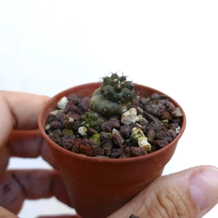 Copiapoa cinerea x humilis è un cactus ibrido che combina le caratteristiche di Copiapoa cinerea e Copiapoa humilis, entrambe originarie dei deserti costieri del nord del Cile. Questa pianta forma tipicamente piccoli gruppi di fusti globosi o leggermente cilindrici di colore grigio-blu con un rivestimento polveroso. I fusti possono crescere fino a 6 cm di diametro, con costolature prominenti e areole che portano spine corte e scure. In estate, produce piccoli fiori gialli a forma di imbuto, che offrono un contrasto vivace rispetto ai toni sobri dei fusti. Questo ibrido è apprezzato per il suo aspetto unico, la dimensione compatta e l’adattabilità agli ambienti aridi.