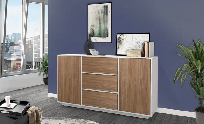 Credenza 3 Ante + 1 cassetto 120x40x82 cm Sunrise Bianco Lucido e Ardesia