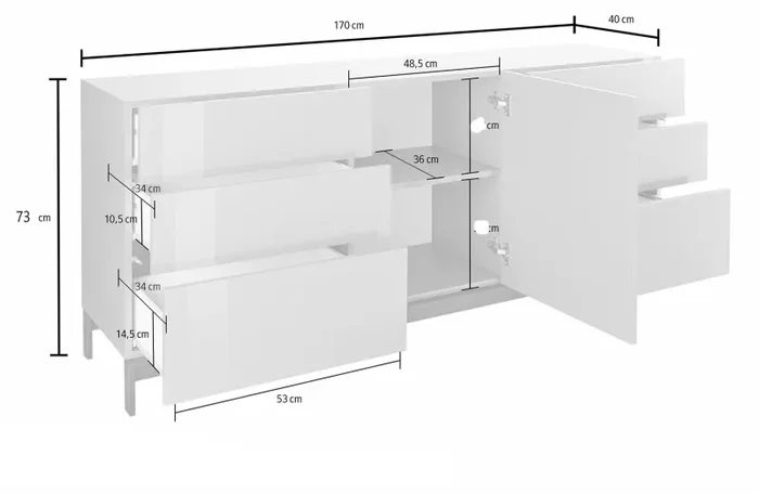 Credenza Mobile da Salotto 3 Porte 138x42x84cm TFT Build Bianco Lucido