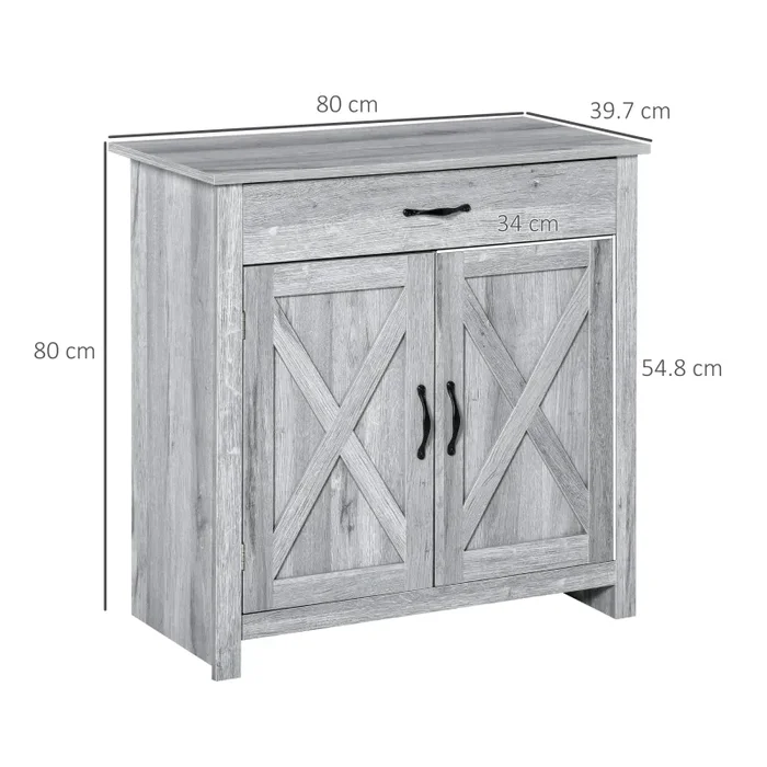 Credenza Cucina Country con Armadietto a 2 Ante e Cassetto 80×39.7x80cm Grigio