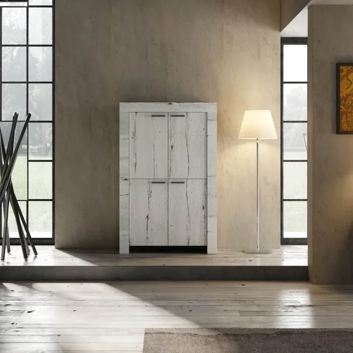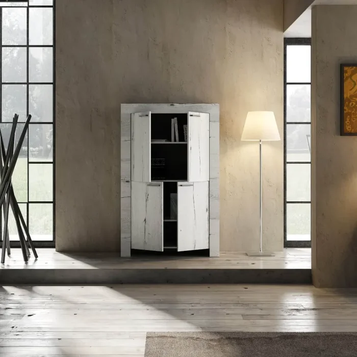 Recensisci per primo “Credenza Mobile Soggiorno 4 Ante in Melaminico 102x43x158cm TFT Neve Rovere Neve Saldi”