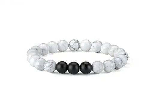 • Stone :20 pcs matte white turquoise and 3 pcs matte black agate/20 pcs matte black agate and 3 pcs matte white turquoise.Durable and comfortable. Flexible but not loose.