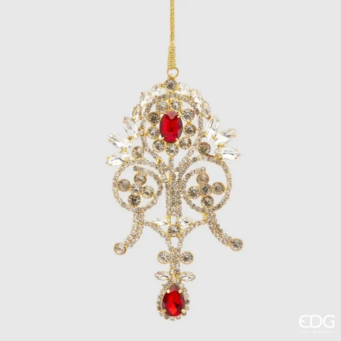 EDG Enzo De Gasperi Decorazioni Natale Gemme Vetro Damasco H 13 Cm Red 1 Pz