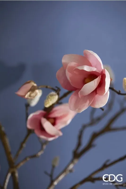 EDG Enzo De Gasperi Ramo Magnolia Real Fiore e Foglie Artificiale H 69 Cm White Green