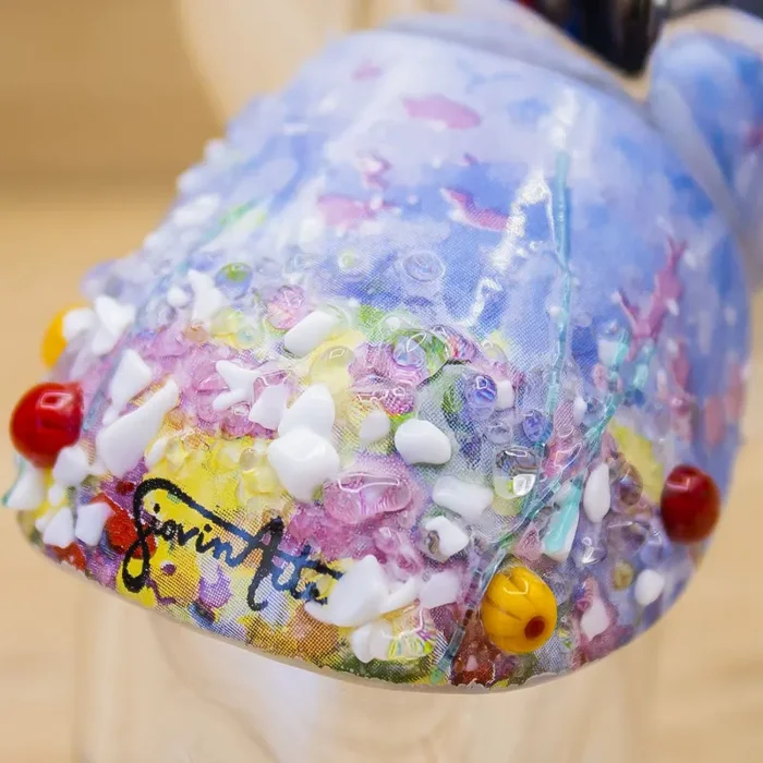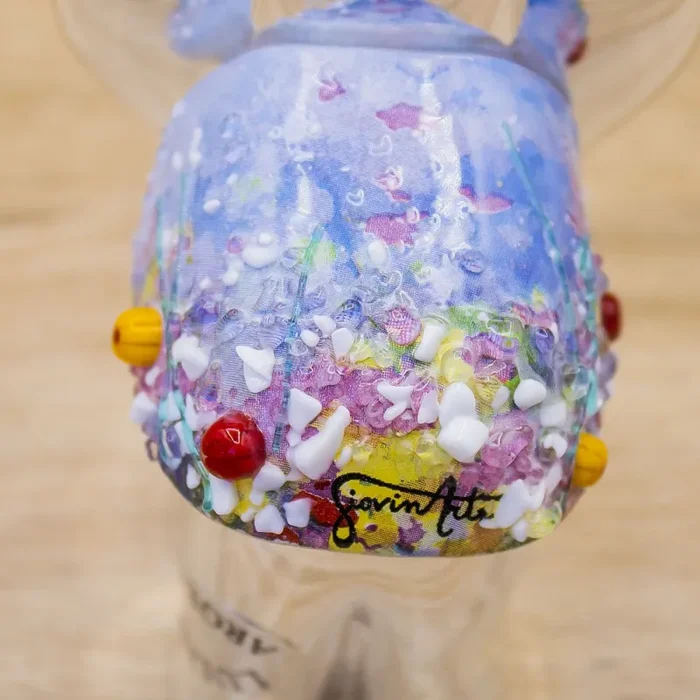 Elefantino Argento con Corazza in Vetro con decori colorati, firmato Lully Argenti.
