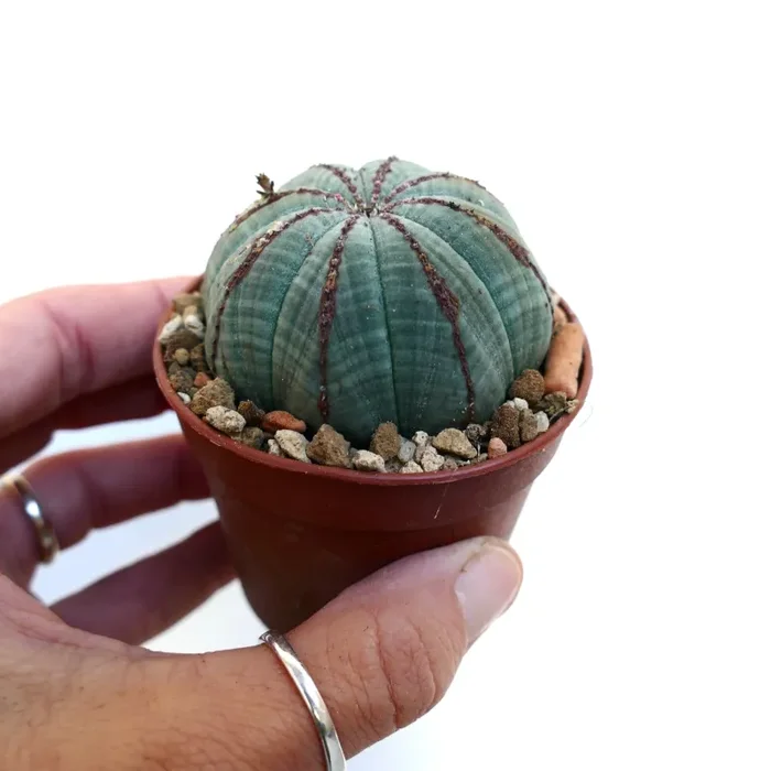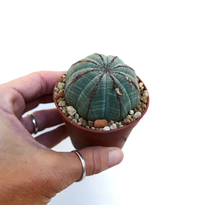 L’Euphorbia obesa ricorda una palla, senza spine e decorativa. È comunemente conosciuta come “pianta da baseball” per la sua forma. Il suo diametro è compreso tra 6 cm e 15 cm a seconda dell’età. Le piante giovani sono sferiche, ma contengono riserve d’acqua per i periodi di siccità.