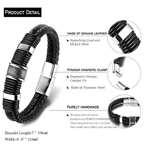 • √ MARCHIO DI FABBRICA – Abbiamo il nostro marchio e anche OEM per alcuni marchi di lusso.Il prodotto è realizzato in acciaio al titanio anallergico di qualità di lusso, magneti di grado medico e vera pelle. Halukakah decide di ridurre i costi di marketing, i costi del servizio clienti, i modelli fantasiosi e altri costi inutili per assicurarsi che tutti possano godere di gioiellerie decenti senza rompere la banca.
