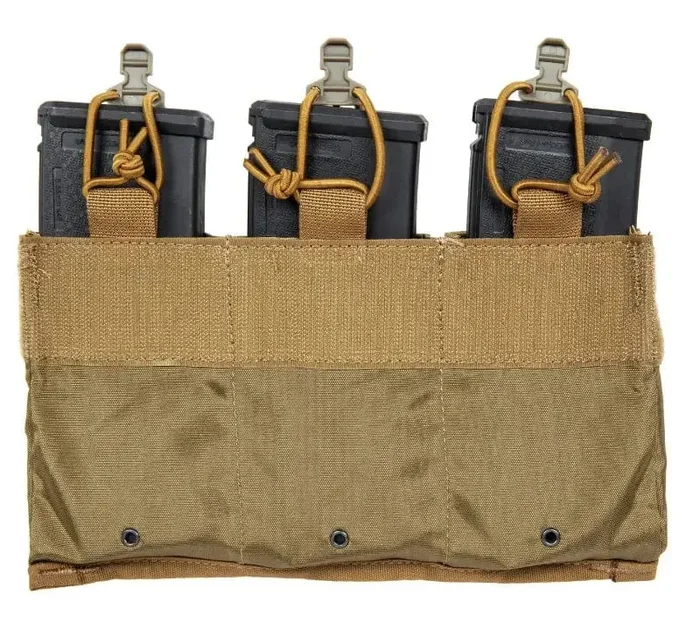 Inserto Porta Caricatori Triplo, Tasca Inner per Tattici – Primal Gear. Porta caricatori tripla per serie 7.62 e 5.56. I caricatori sono fissati da una fascia elastica regolabile con dispositivo pull-off. Il forte retro in velcro offre la stabilità necessaria. La parte anteriore con velcro è adatta per attaccare le toppe. Il porta caricatore può essere abbinato a vari gilet con attacco a velcro o con kangaroo. Ideale per caricatori 5.56 e 7.62