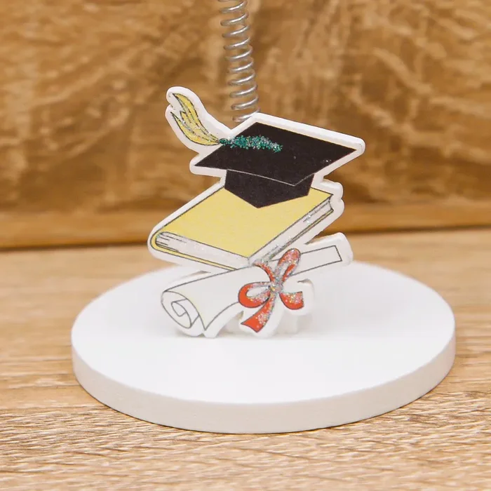 Lavagnetta con base in tonda in legno, molla in metallo e Applicazione con Simbolo della Laurea.
