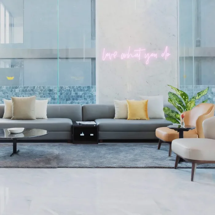 Scritta a neonled con pannello in plexiglass infrangibile trasparente.