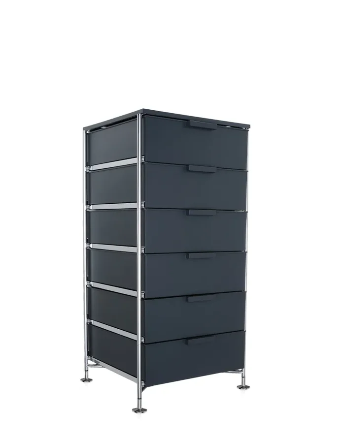 Mobil è un sistema di contenitori che si prestano ad essere inseriti in tutti gli ambienti della casa e dell’ufficio, rispondendo a diverse funzioni d’uso. Il cassetto, alternato ai piani e ai top superiori, è l’elemento base del sistema. Mobil può essere semplice cassettiera da 2 a 6 cassetti e avere comode maniglie. Le possibili configurazioni possono poggiare su ruote o su piedini fissi, suggerendo l’uso di Mobil in diversi contesti: dalla camera da letto al soggiorno al bagno, allo studio o l’ufficio come cassettiera da scrivania per riporre cancelleria e documenti.