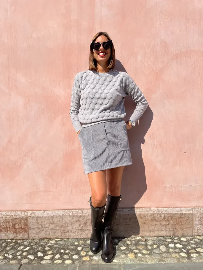 Il maglione è un capo realizzato in morbida e calda viscosa, caratterizzato da un’esclusiva lavorazione a gocce. Ideale per restare al caldo con stile, è perfetto per affrontare le fredde giornate invernali. Con un look elegante e confortevole, è l’ideale per chi cerca un capo di qualità e dal design unico.