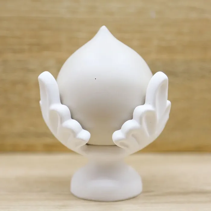 Pigna/Pomo di colore tortora con base bianca, firmato Giovinarte.