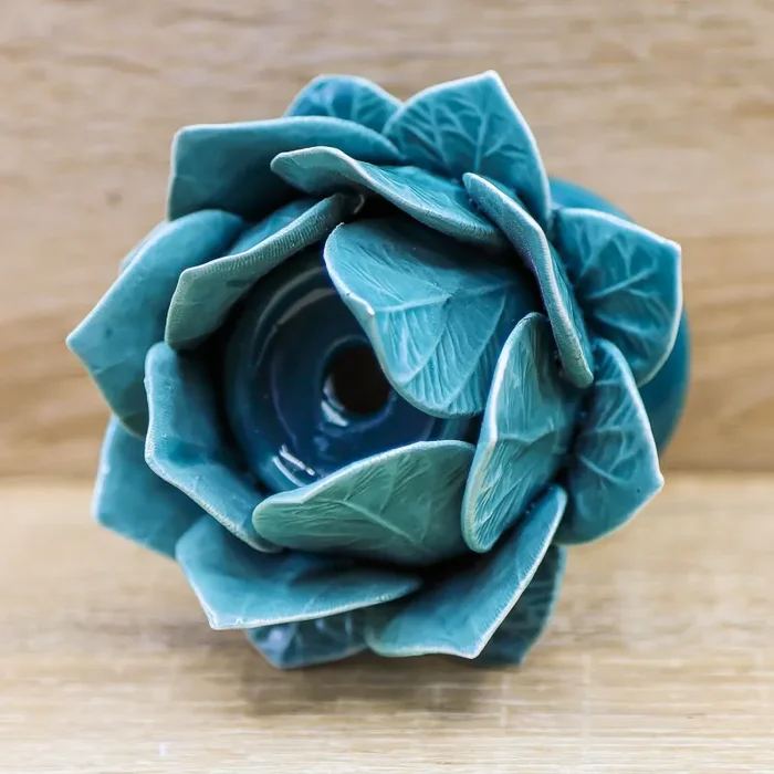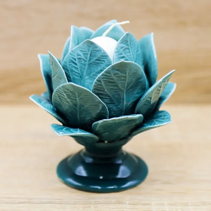 Portacandele a forma di Rosa di colore Verde, in Porcellana di Capodimonte, firmato Pienne Design.