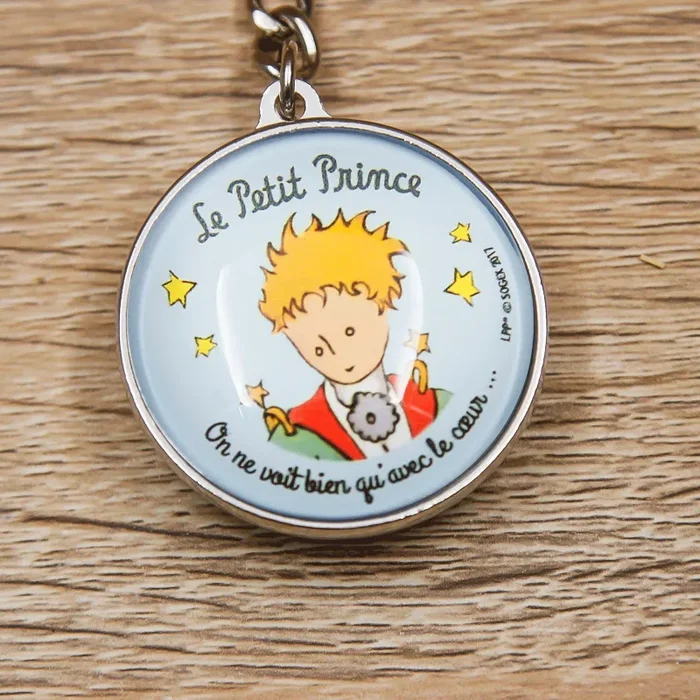 Portachiavi Il Piccolo Principe Azzurro. Il portachiavi ha due facce dove c’è scritto: “Non si vede bene che con il cuore. L’essenziale è invisibile agli occhi.”