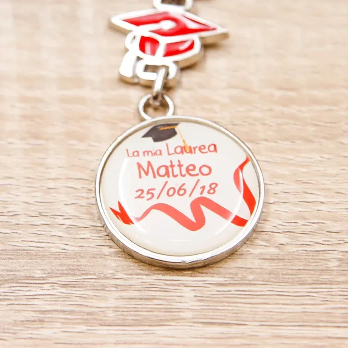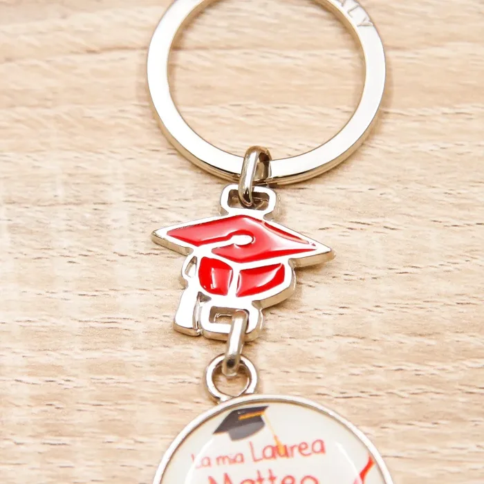 Portachiavi Laurea con Cappello Laurea Rosso e Targhetta Personalizzata . – Made in Italy.