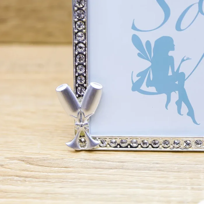 Portafoto rettangolare con cornice ricoperta di strass, numero 25 e due calici di champagne, firmato De Santis Argenti.