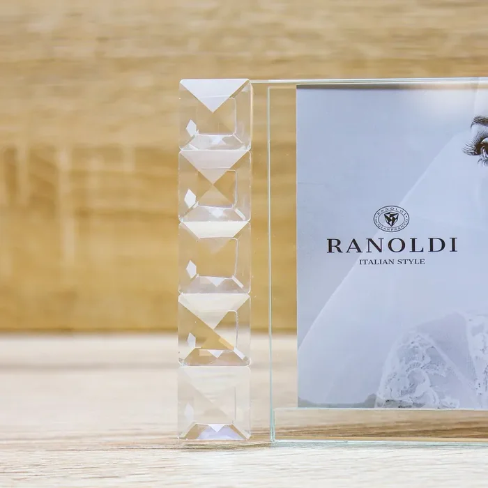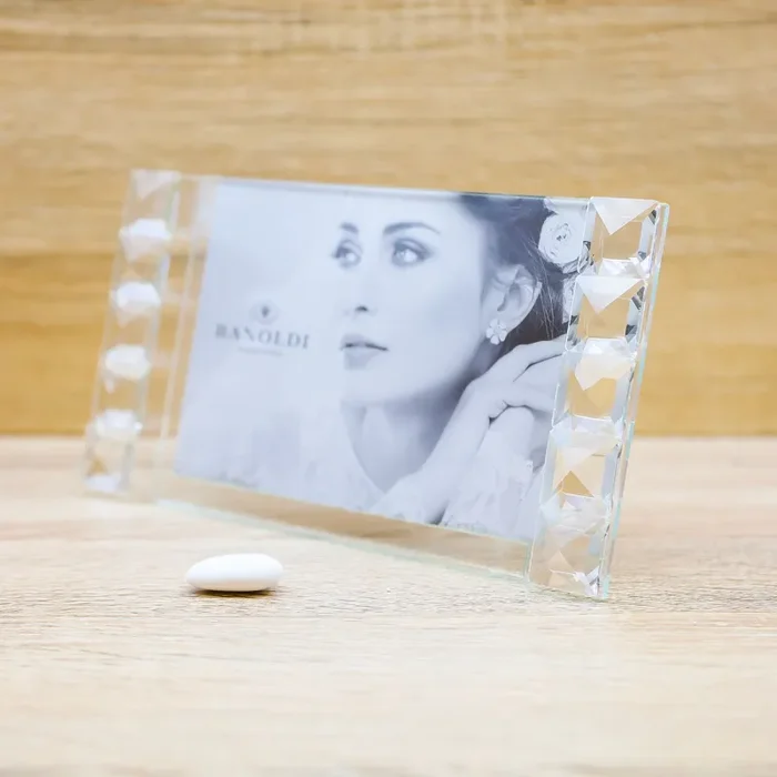 Portafoto orizzontale realizzato in cristallo, firmato Ranoldi.