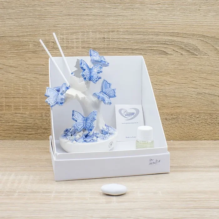 Profumatore a forma di Albero con Farfalle di colore Blu, in Porcellana di Capodimonte, firmato Pienne Design.