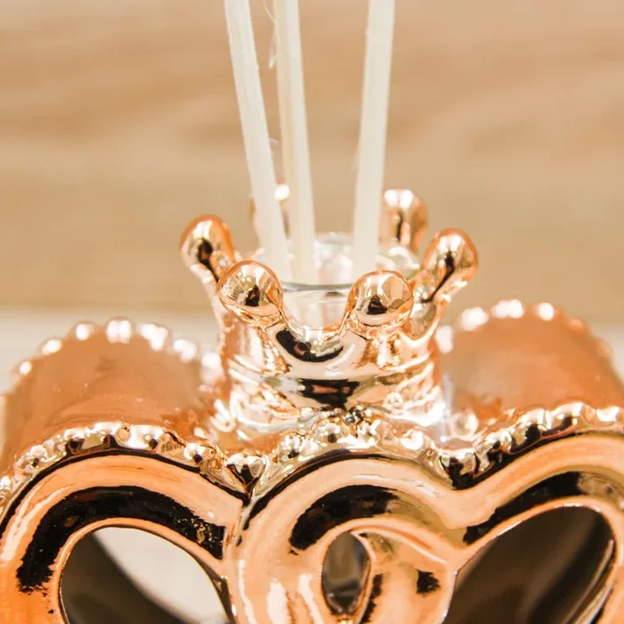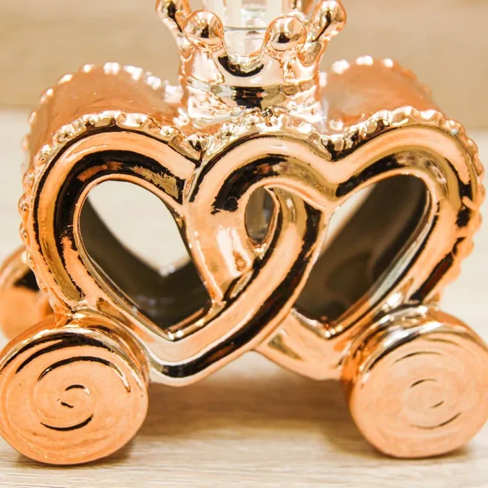 Carrozza Profumatore a forma di cuore con una coroncina di colore oro rosa, firmato Claraluna.