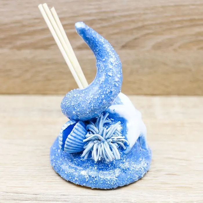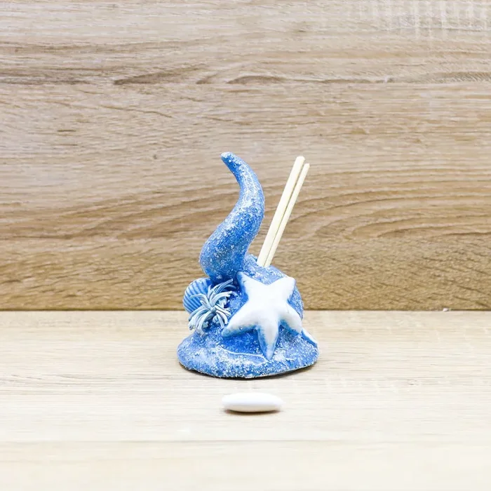 Profumatore Corno blu o azzurro, con una stella marina bianco e una conchiglia, firmato Porcellana di Capodimonte.