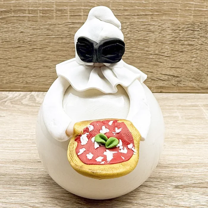 Statuina palla Pulcinella con Pizza, firmato Bella Napoli.